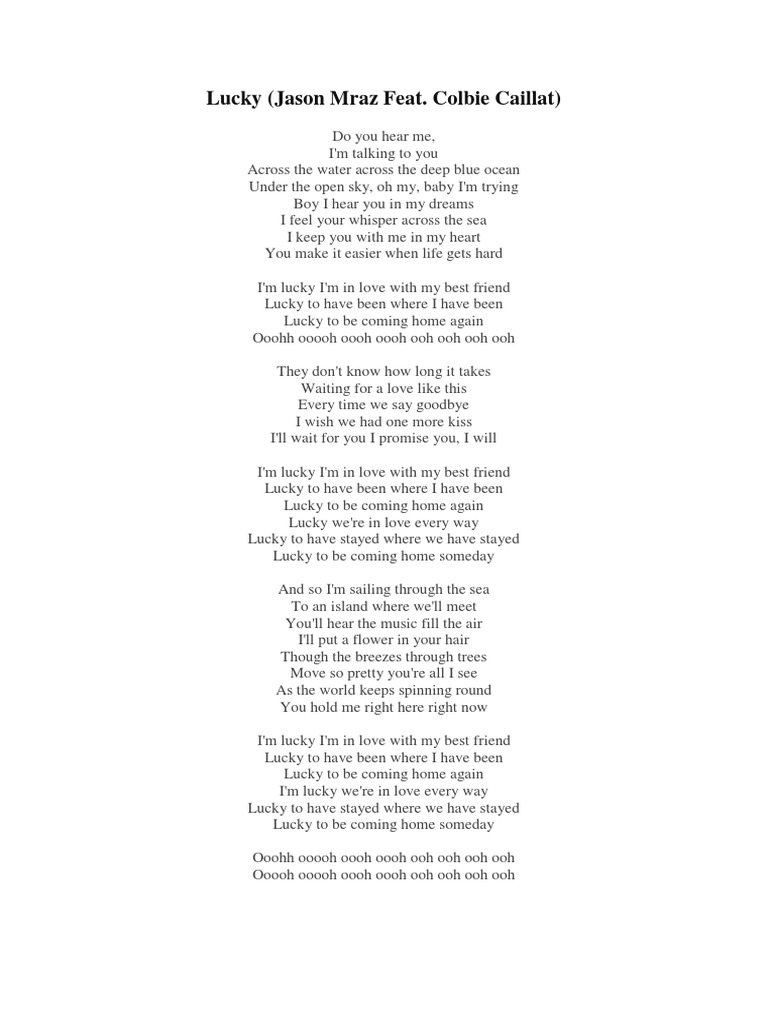 Maybe you would like to learn more about one of these? Lirik lagu jason mraz lucky. Check spelling or type a new query. We did not find results for: